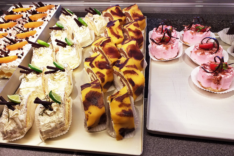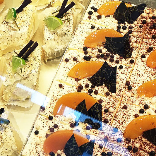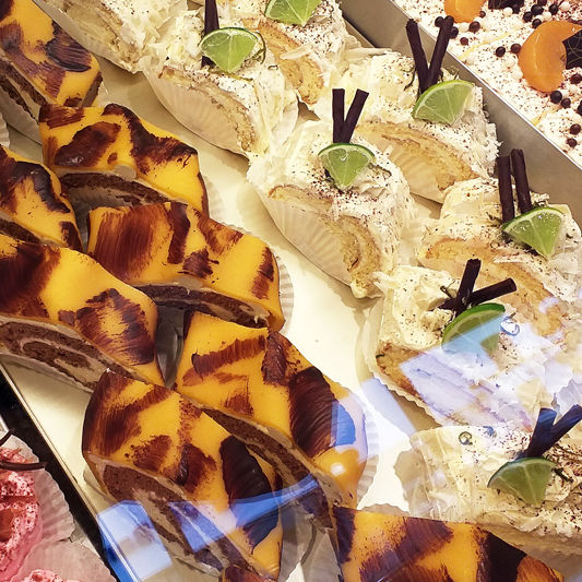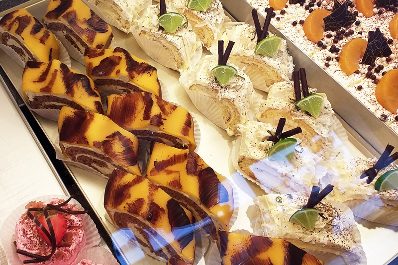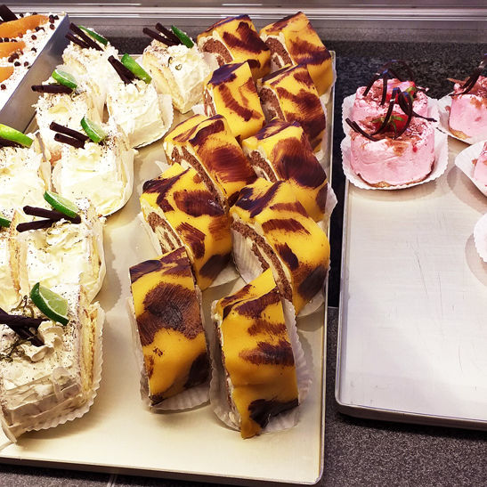 Wir empfehlen unsere Zimtsahneschnitten mit feiner Kirschnote und die Karamell-Krokant-Creme-Röllchen. Einfach köstlich!